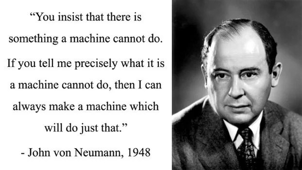 Dit is voor een me een fascinerend iets. Een Von Heumann heeft daarin een aanpak gedaan met een machine. Met regels die de machine kreeg, was de machine in staat een nieuwe situatie te creëren. De gedachte is dat als dat kan, het daarmee wat vaak de definitie van ‘leven’ is onderuit haalde.