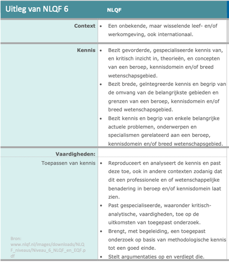 Even kort over de NLQF 6 en hoe die vertaald kan worden naar deze module: