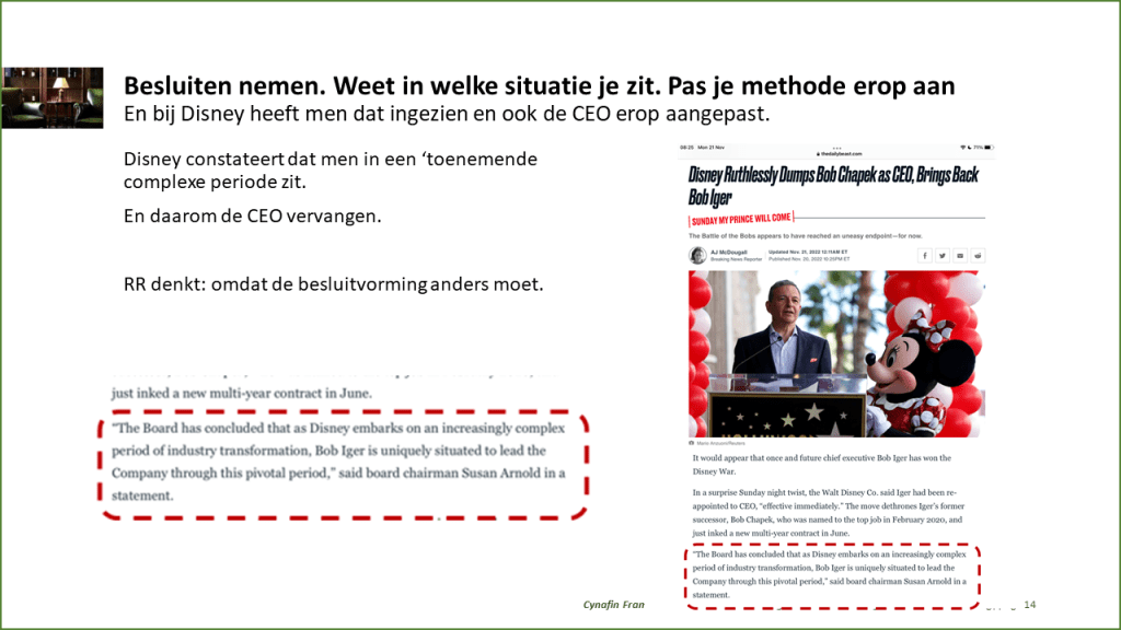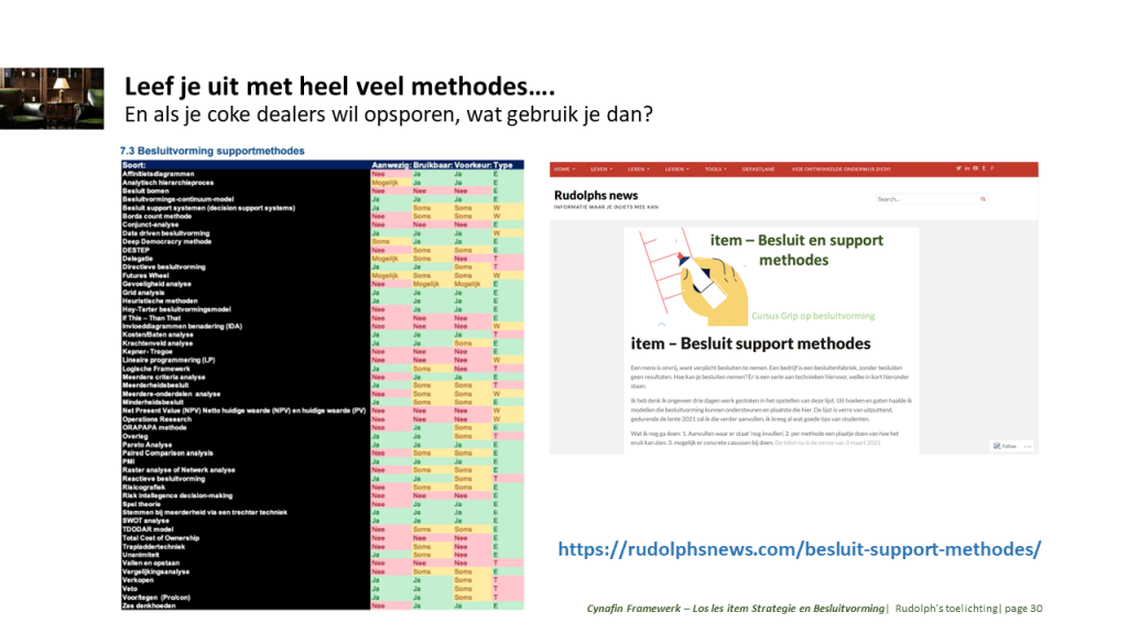 Besluitvorming voorbereiden is erg belangrijk. Het gaat dan over bijvoorbeeld wat je communiceert, wanneer en hoe en hoe je macht kan inzetten. En ook allerlei modellen om besluitvormer te helpen. Wat mij betreft zijn er drie fases van een besluit: 1. De aanvlieg route, 2. Het landen, het laten besluiten en 3. de gevolgen van het besluit.
