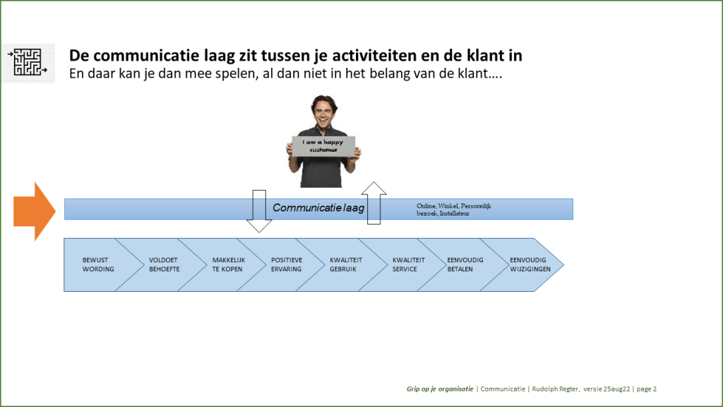 Let op! Je belofte is al gemaakt. Die belofte maak je in de activiteiten (de klant ketting) en komt tot zichtbaarheid in de communicatie.