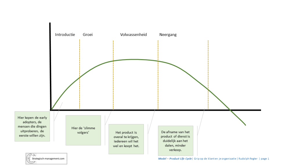Kortom de levensduur van een product. Eerst in een kleine groep populair, dan kopen steeds meer mensen het. En dan heeft iedereen het.