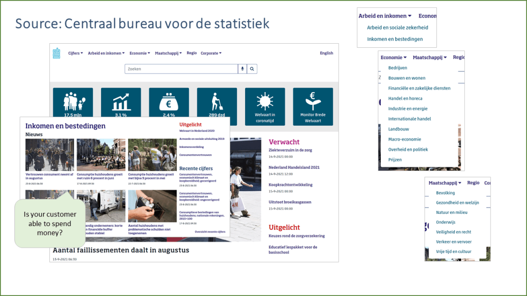 - Privé spaargeld en hoeveel vrij besteedbaar inkomen is er? Dus hoeveel geld kunnen consumenten eventueel besteden aan jouw soort product of dienst
