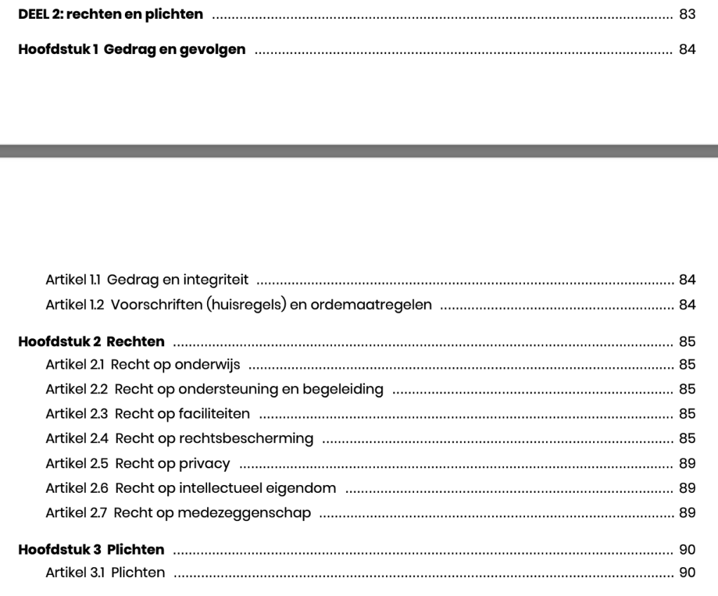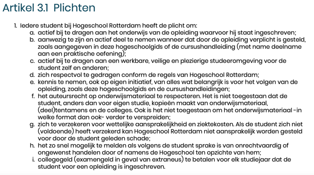 rechten en plichten. Ze zijn beschreven in de hogeschool gids.