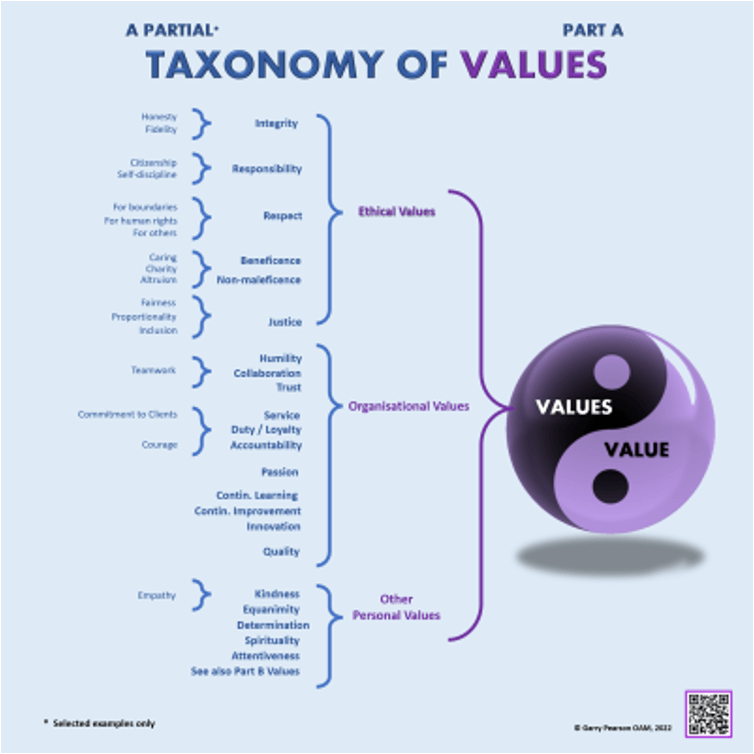 Wil je short cut? Kijk dan naar onderaan deze pagina en de ‘Taxonomie van Values’. Dat is het eindpunt van al het denkwerk zo ik zo zeggen. Een verdere opdeling heb ik gemaakt wat later in tijd. Die ga je hier vinden.
