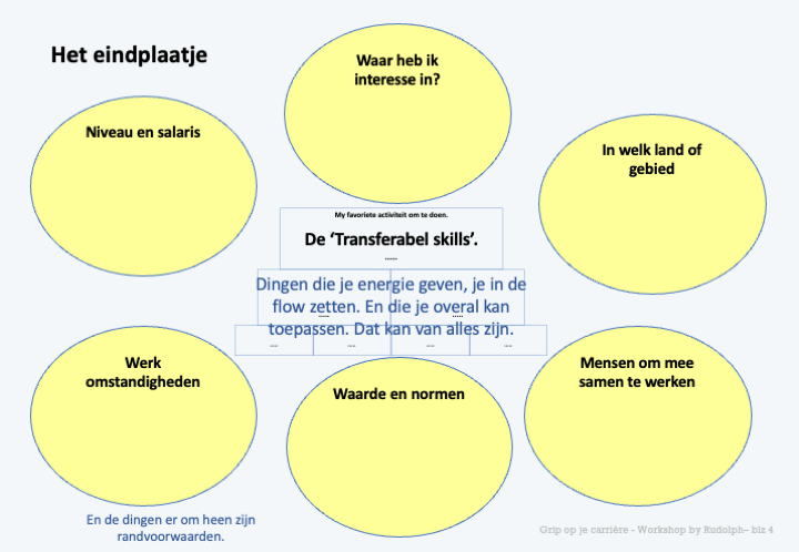 Met deze plaat start het. Wat zijn die dingen die je graag doet en die je overal kan inzetten? Denk aan het plezier dat je hebt in dingen organiseren. Of het praten met mensen. Of mensen iets leren. Of etcetc.